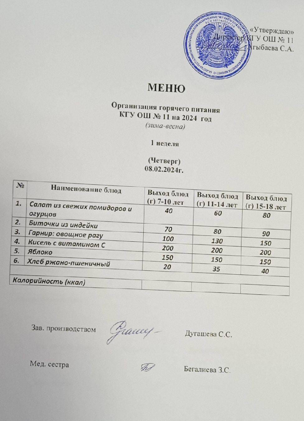 Мәзір (қыс-көктем) Меню (зима-весна)