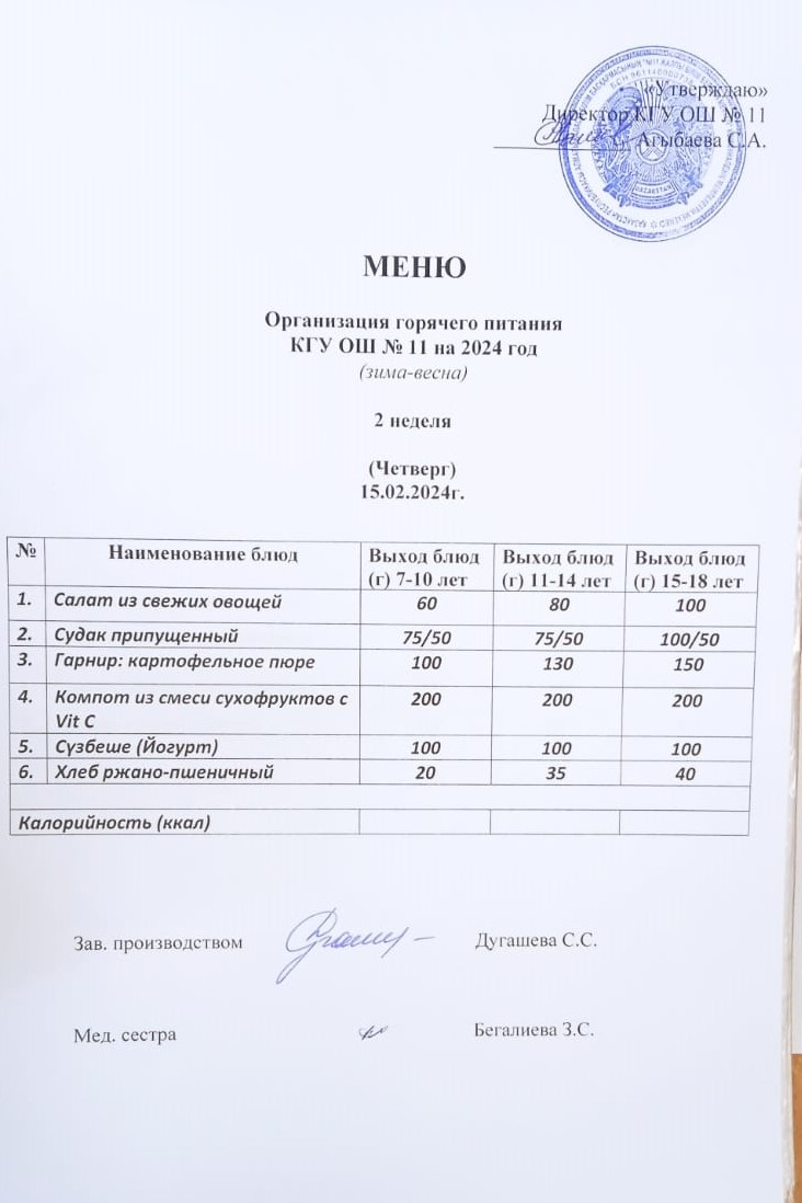 Мәзір (қыс-көктем) Меню (зима-весна)
