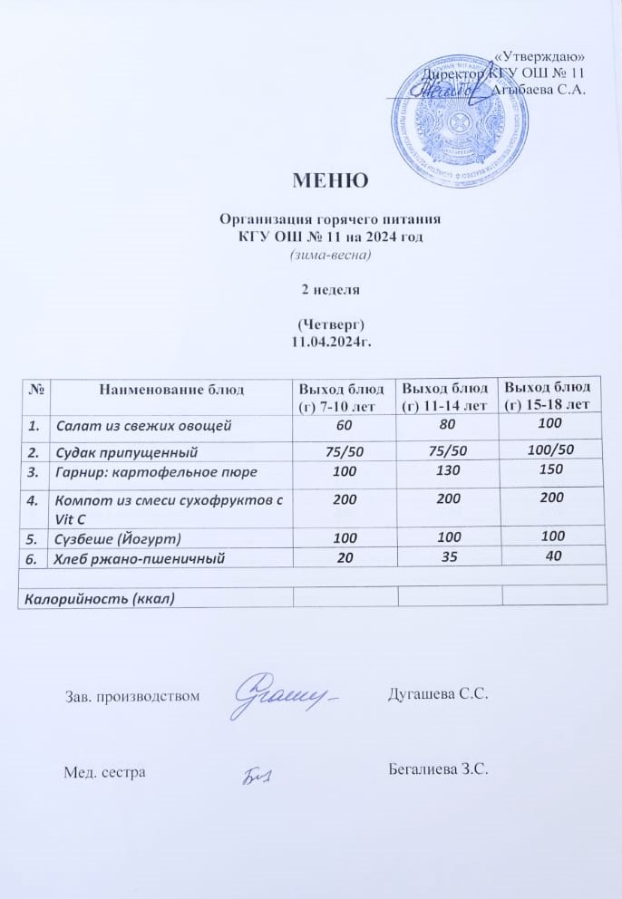 Мәзір (қыс-көктем) Меню (зима-весна)