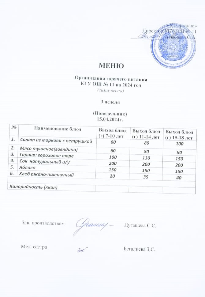 Мәзір (қыс-көктем) Меню (зима-весна)