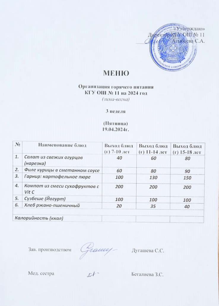 Мәзір (қыс-көктем) Меню (зима-весна)