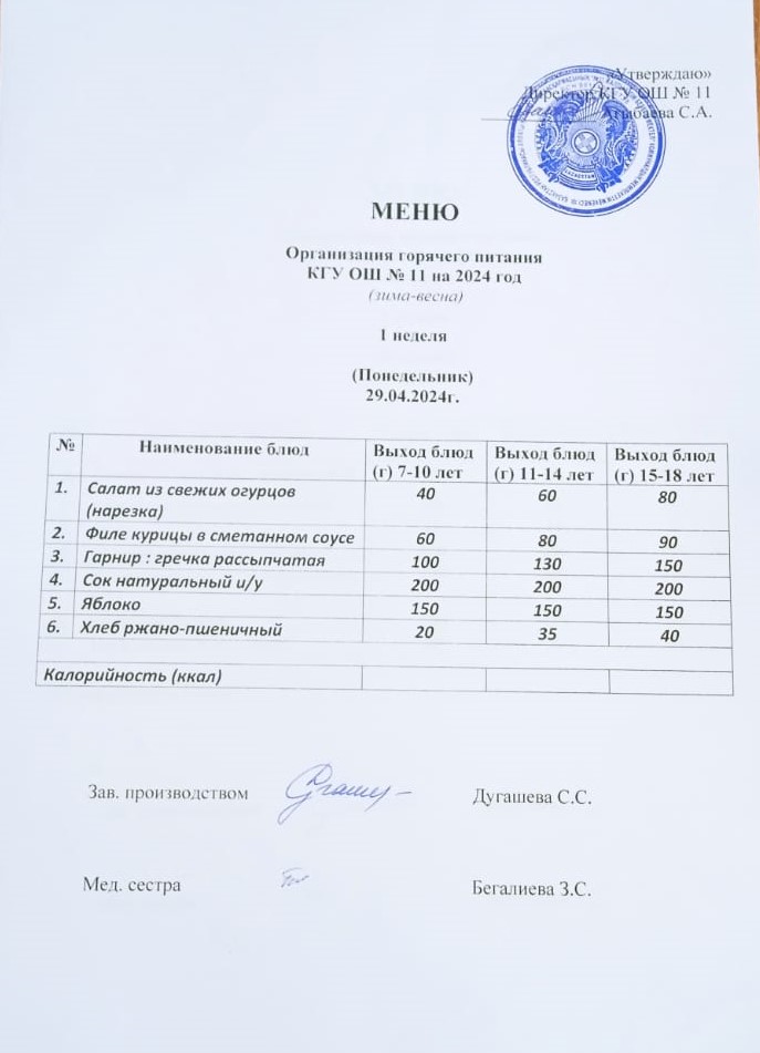 Мәзір (қыс-көктем) Меню (зима-весна)