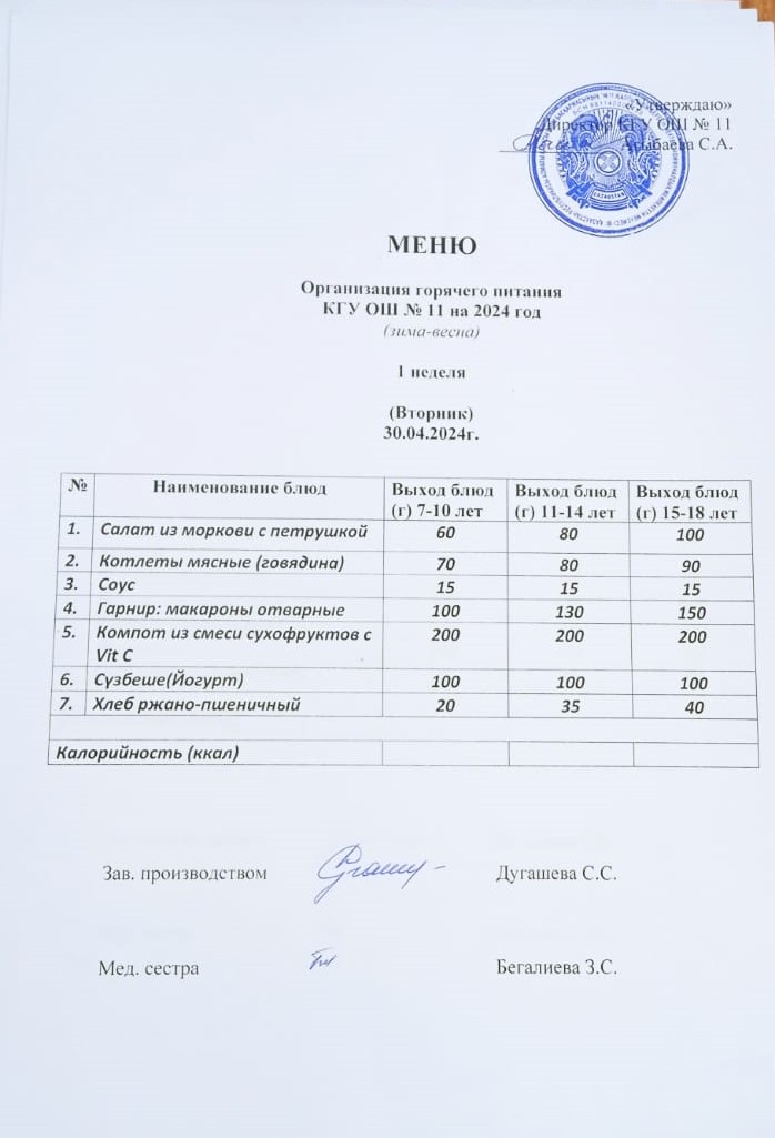 Мәзір (қыс-көктем) Меню (зима-весна)