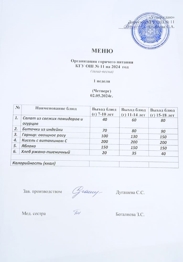 Мәзір (қыс-көктем) Меню (зима-весна)