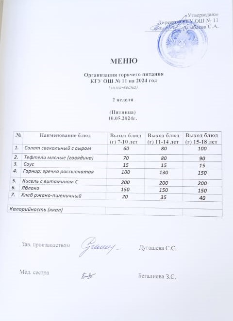 Мәзір (қыс-көктем) Меню (зима-весна)