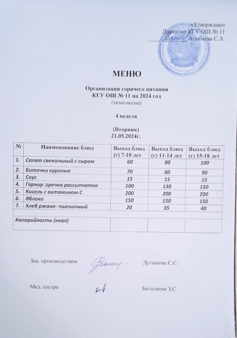 Мәзір (қыс-көктем) Меню (зима-весна)
