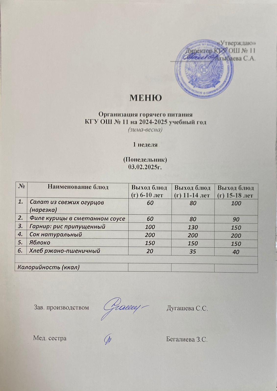 Мәзір / Меню