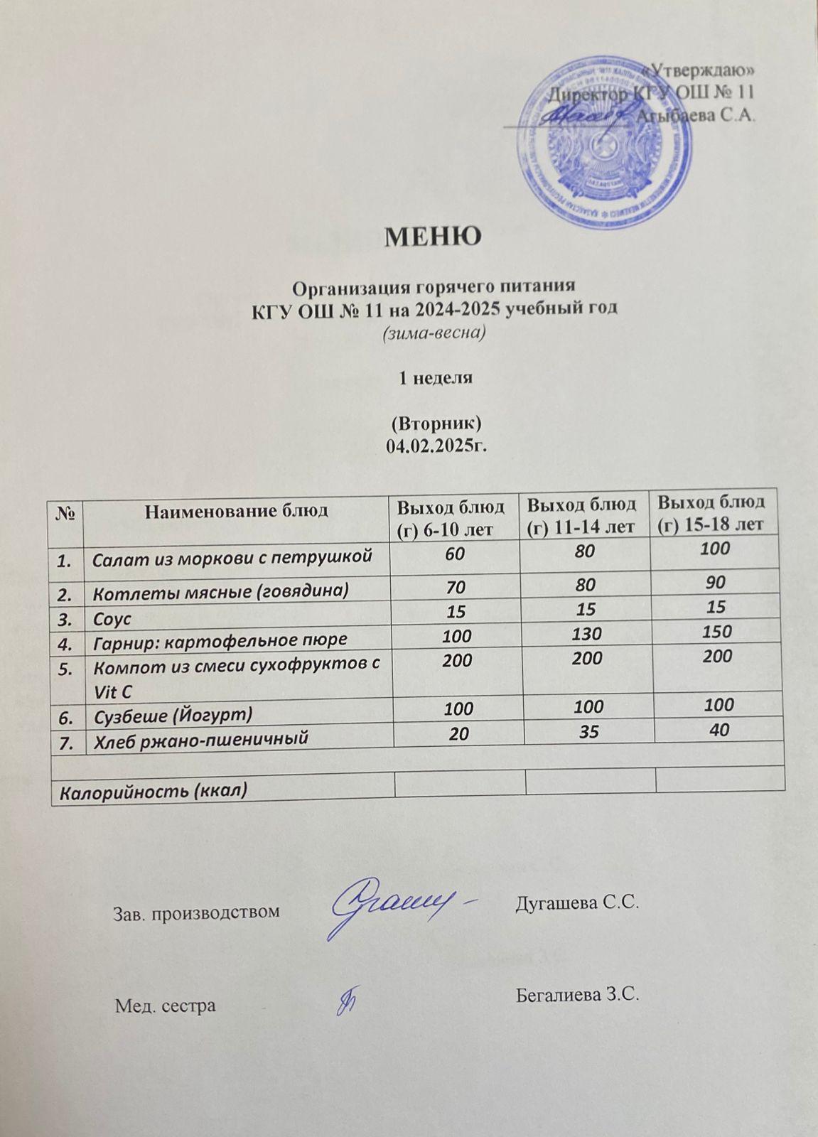 Мәзір / Меню