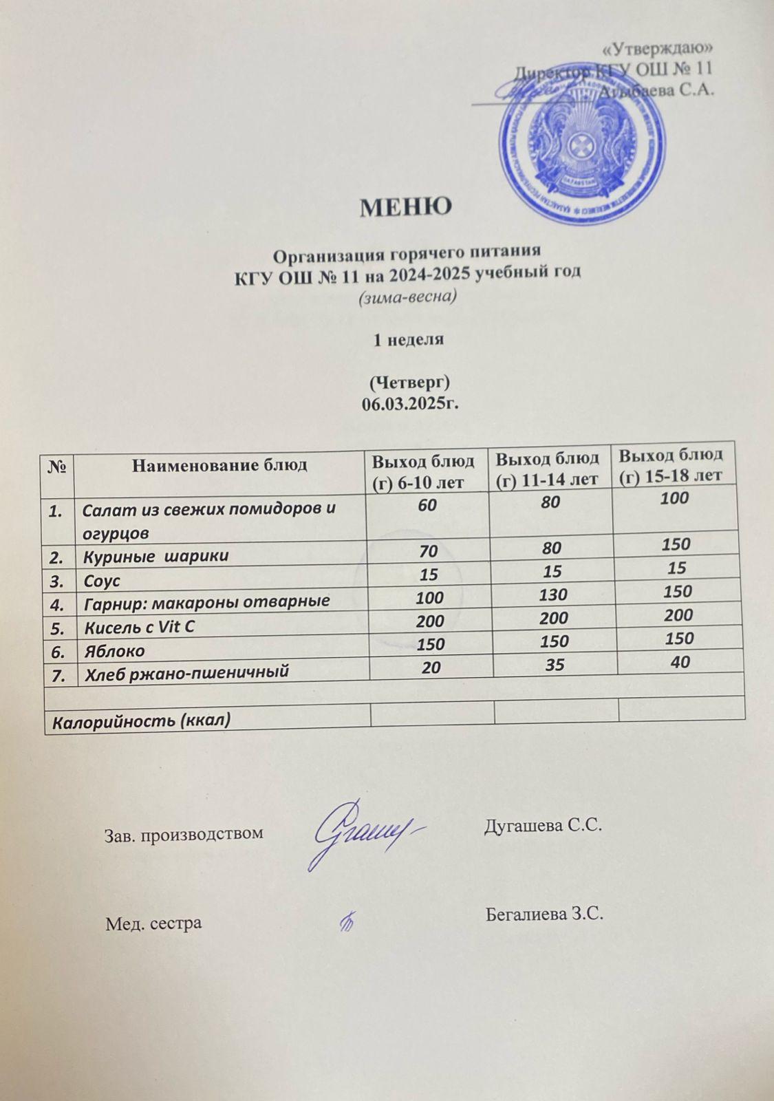 Мәзір/Меню