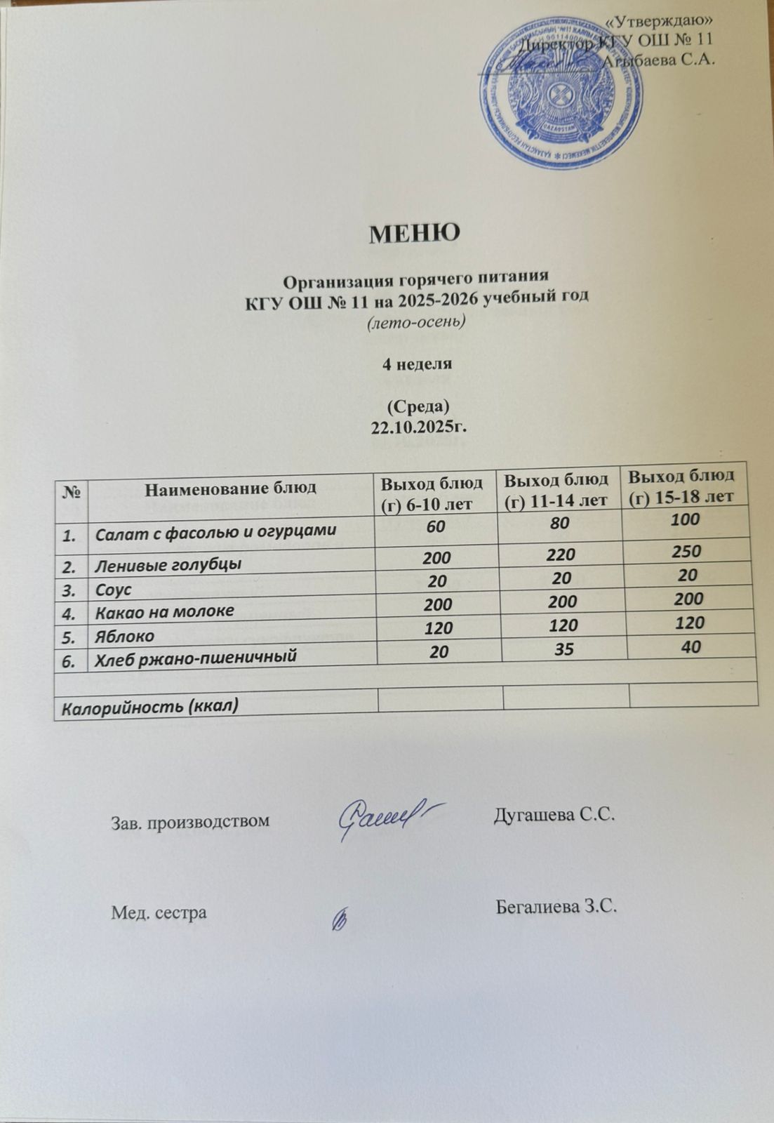 Мәзір/Меню