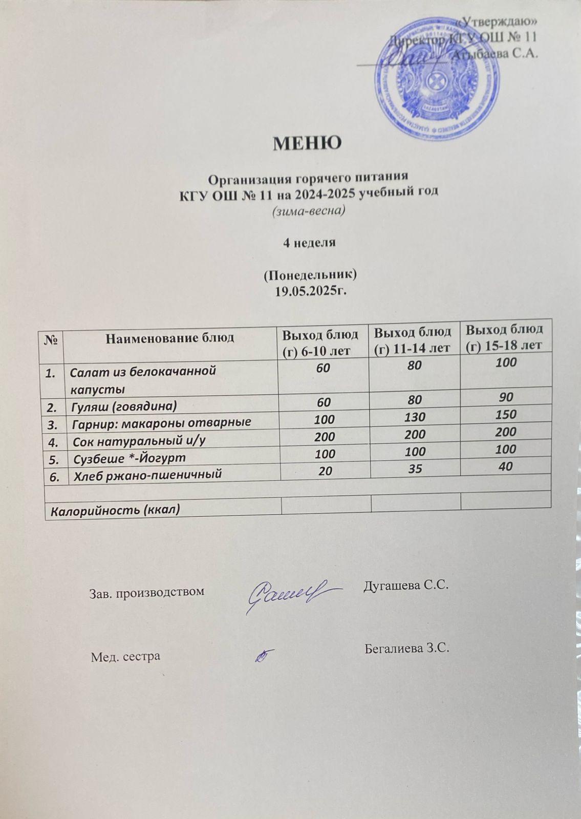 Мәзір/Меню