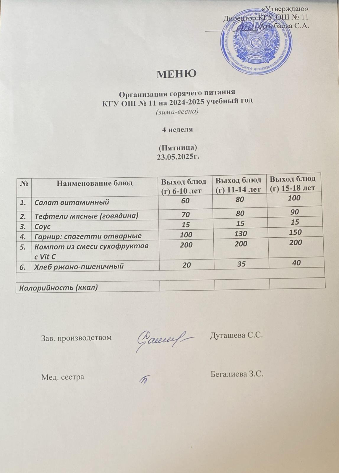 Мәзір/Меню
