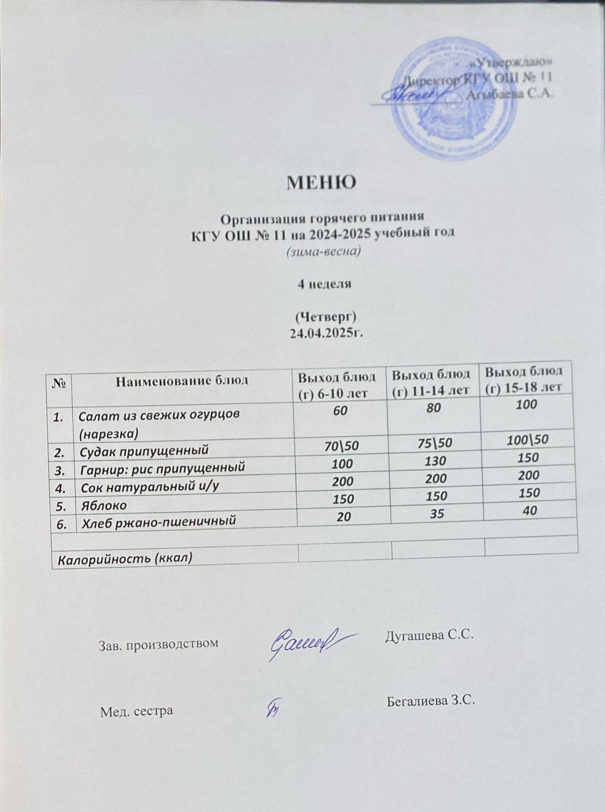Мәзір / Меню