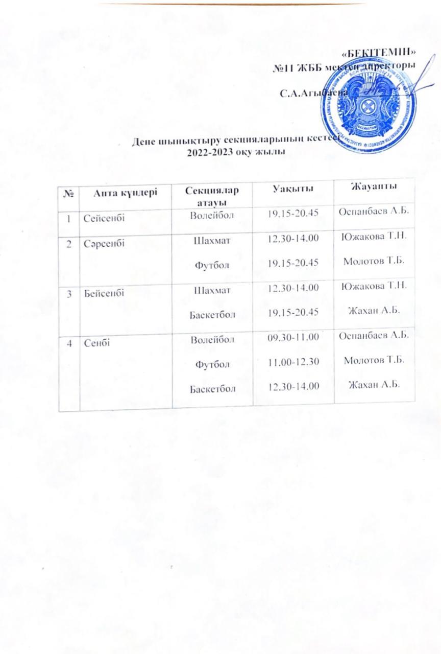 01 қыркүйек 2022 0 1 2 3 4 5 Дене шынықтыру секциялар кестесі 2022-2023 оқу жылы / Расписание секций по физической культуре на 2022-2023 учебный год Осы беттің QR-коды:QR-код этой страницы: