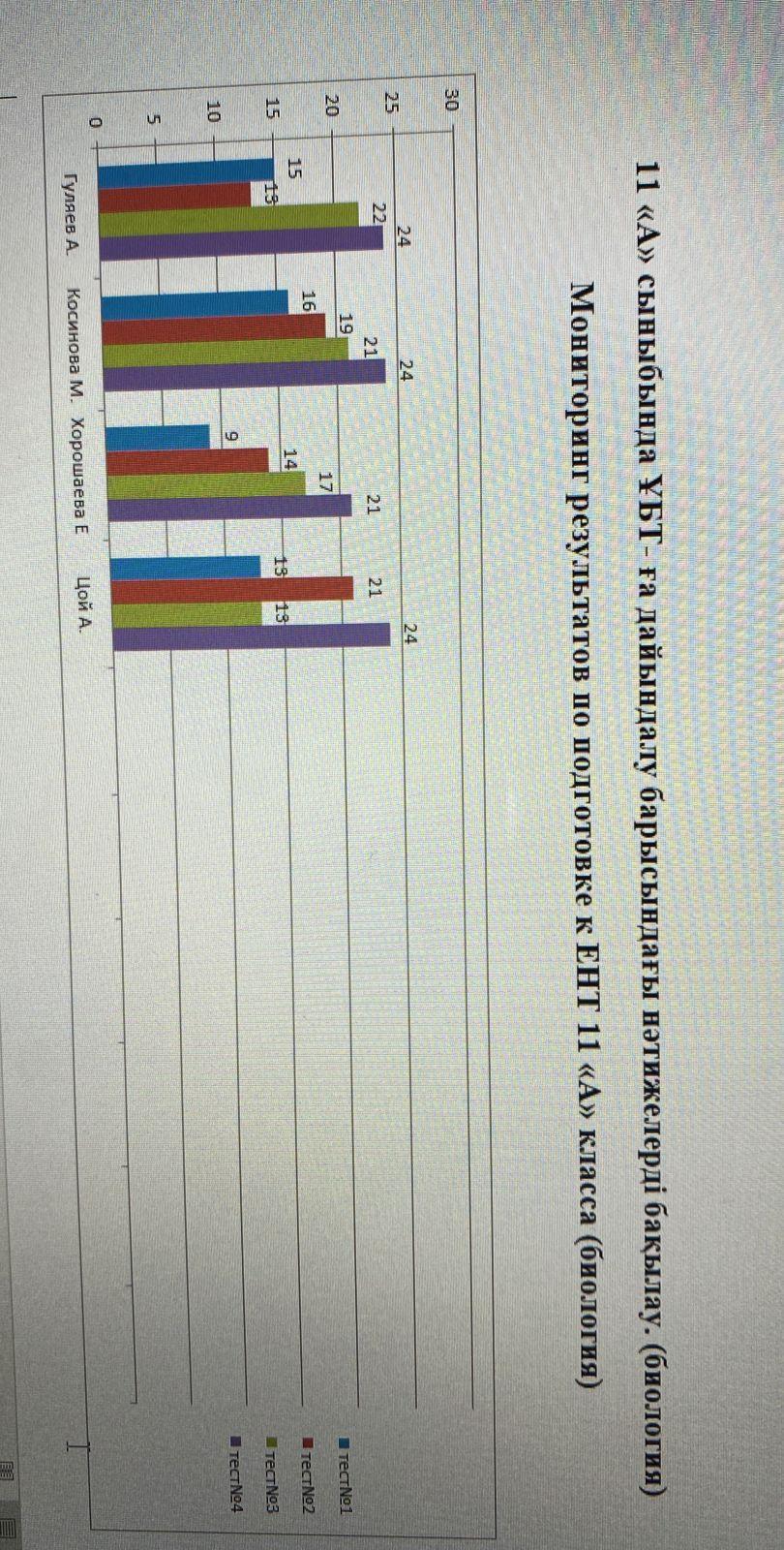 11 "А" -сыныбында ҰБТ -ға дайындалу барысындағы нәтижелерді бақылау. (Биология). Мониторинг результатов пробного тестирования по подготовке к ЕНТ 11 "А" класса ё!(Биология)