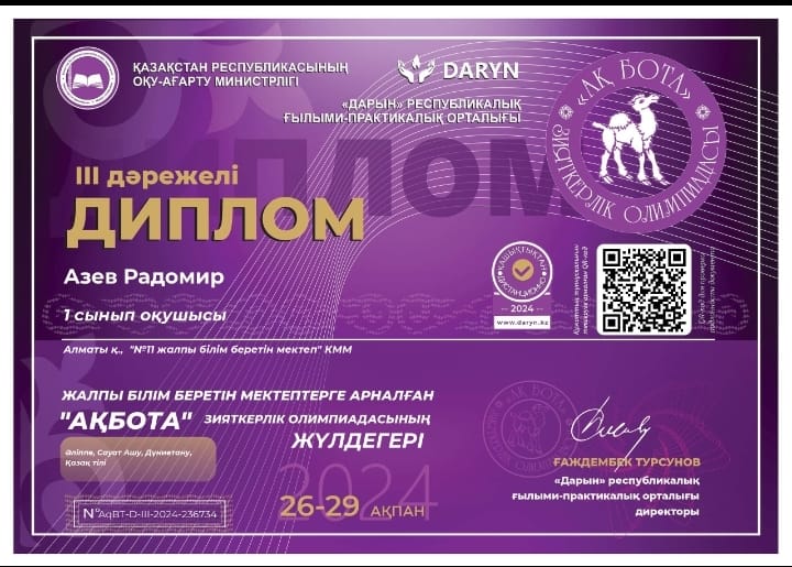 06 наурыз 2024 0 1 2 3 4 5 "АҚБОТА" зияткерлік олимпиада жеңімпаздары/ победители интеллектуальной олимпиады "АҚБОТА" Осы беттің QR-коды:QR-код этой страницы: