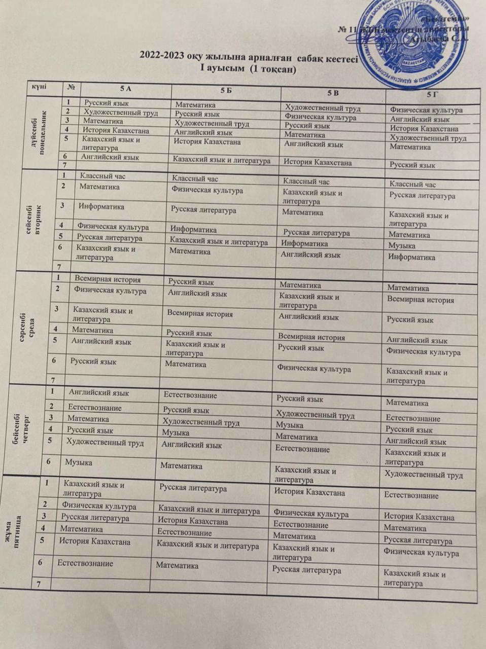 01 қыркүйек 2022 0 1 2 3 4 5 2022-2023 оқу жылына арналған сабақ кестесі / Расписание занятий на 2022-2023 учебный год Осы беттің QR-коды:QR-код этой страницы: