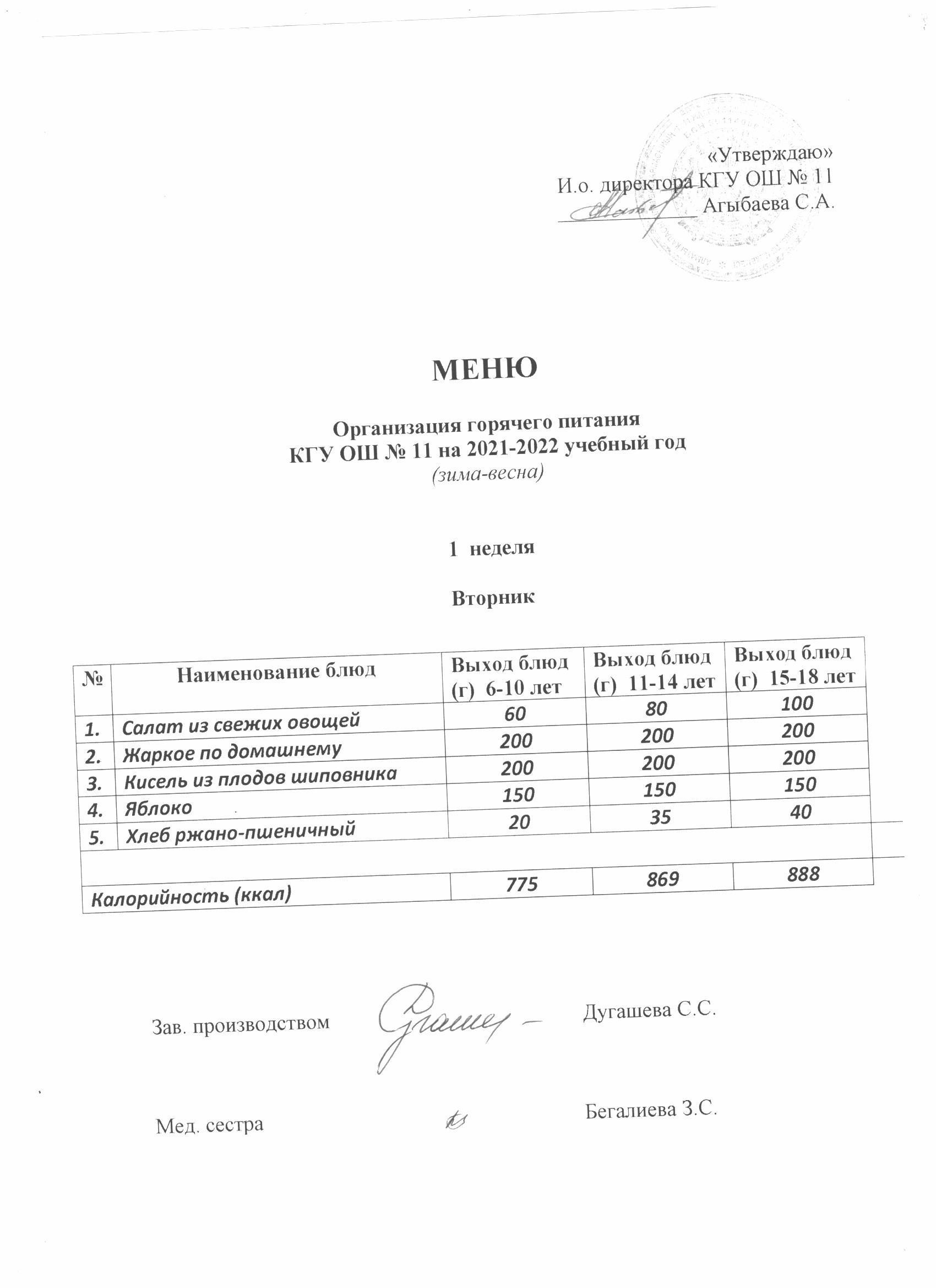 Мәзір (қыс-көктем) Меню (зима-весна)