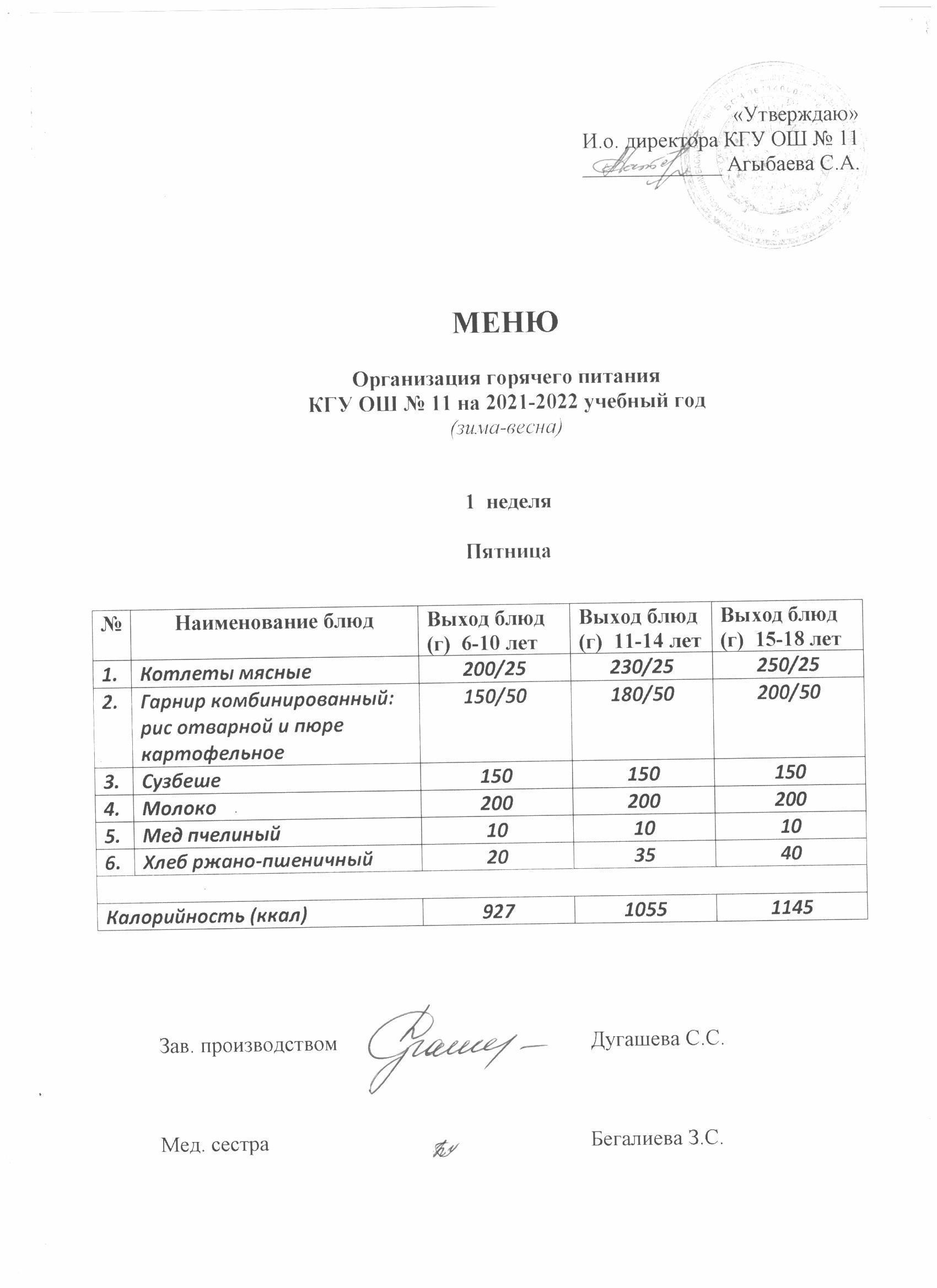 Мәзір (қыс-көктем) Меню (зима-весна)