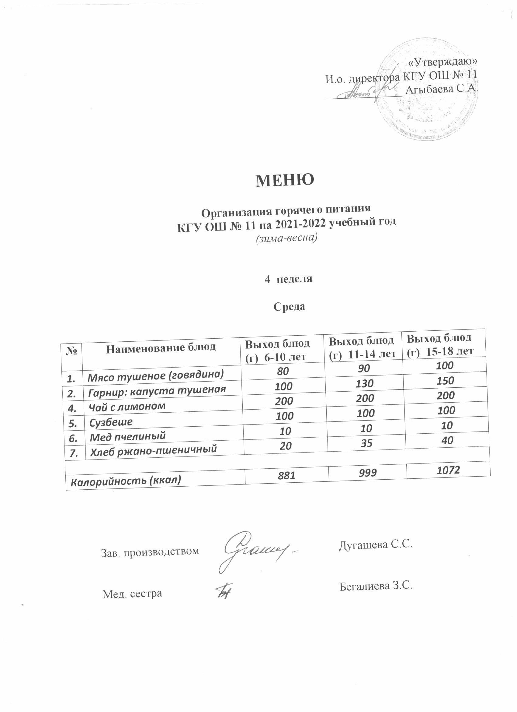 Мәзір (қыс-көктем) Меню (зима-весна)