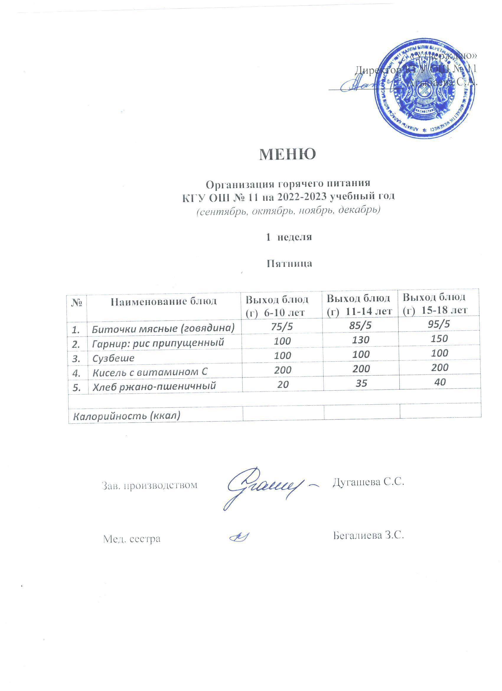2020 жылға арналған Мектептегі тамақтану мәзірі Меню по школьному питанию на 2020