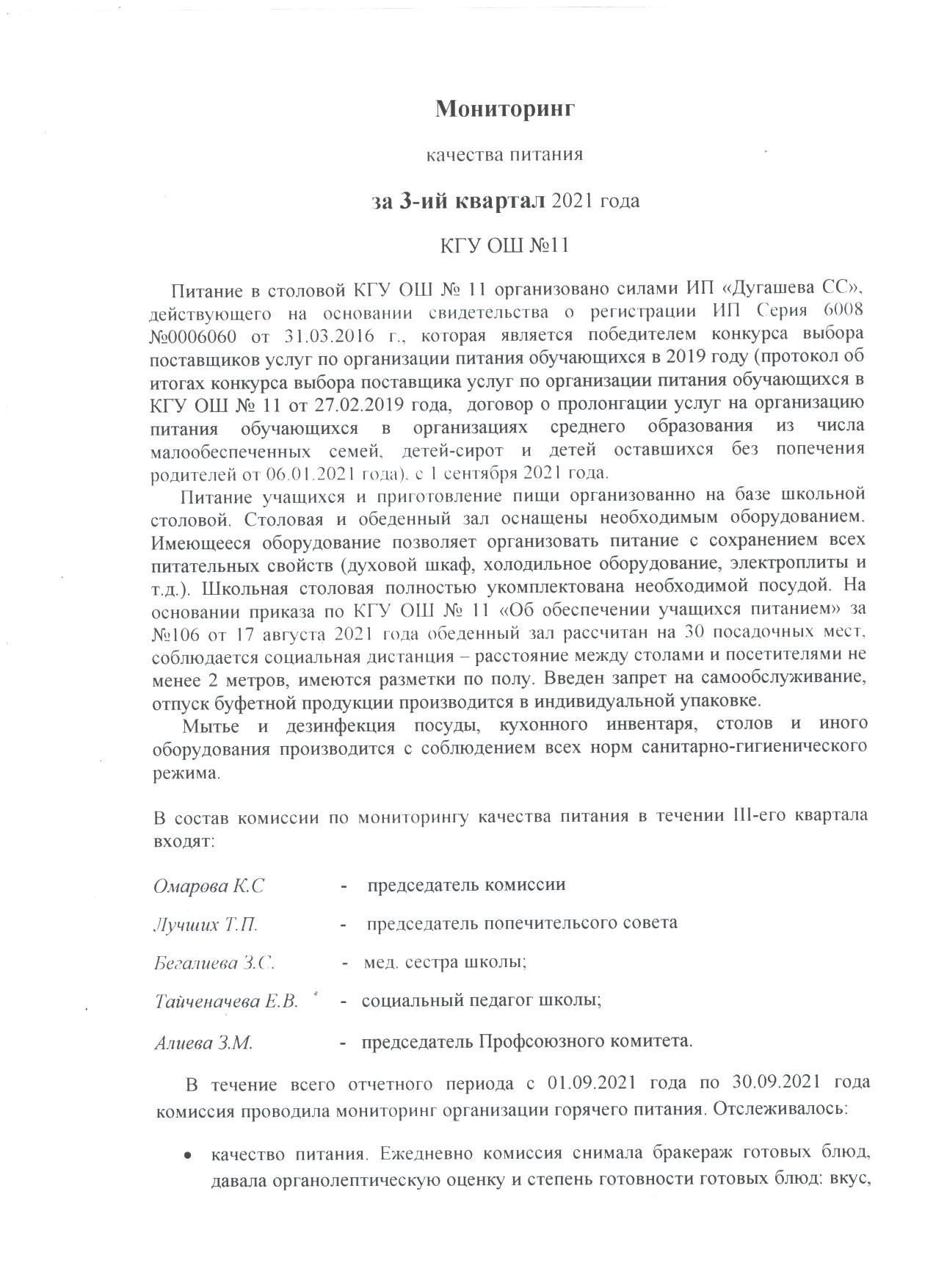 2016-2017 оқу жылының 1-тоқсанындағы тамақтану сапасының мониторингі/Мониторинг качества питания за 1-четверть 2016-2017уч.г
