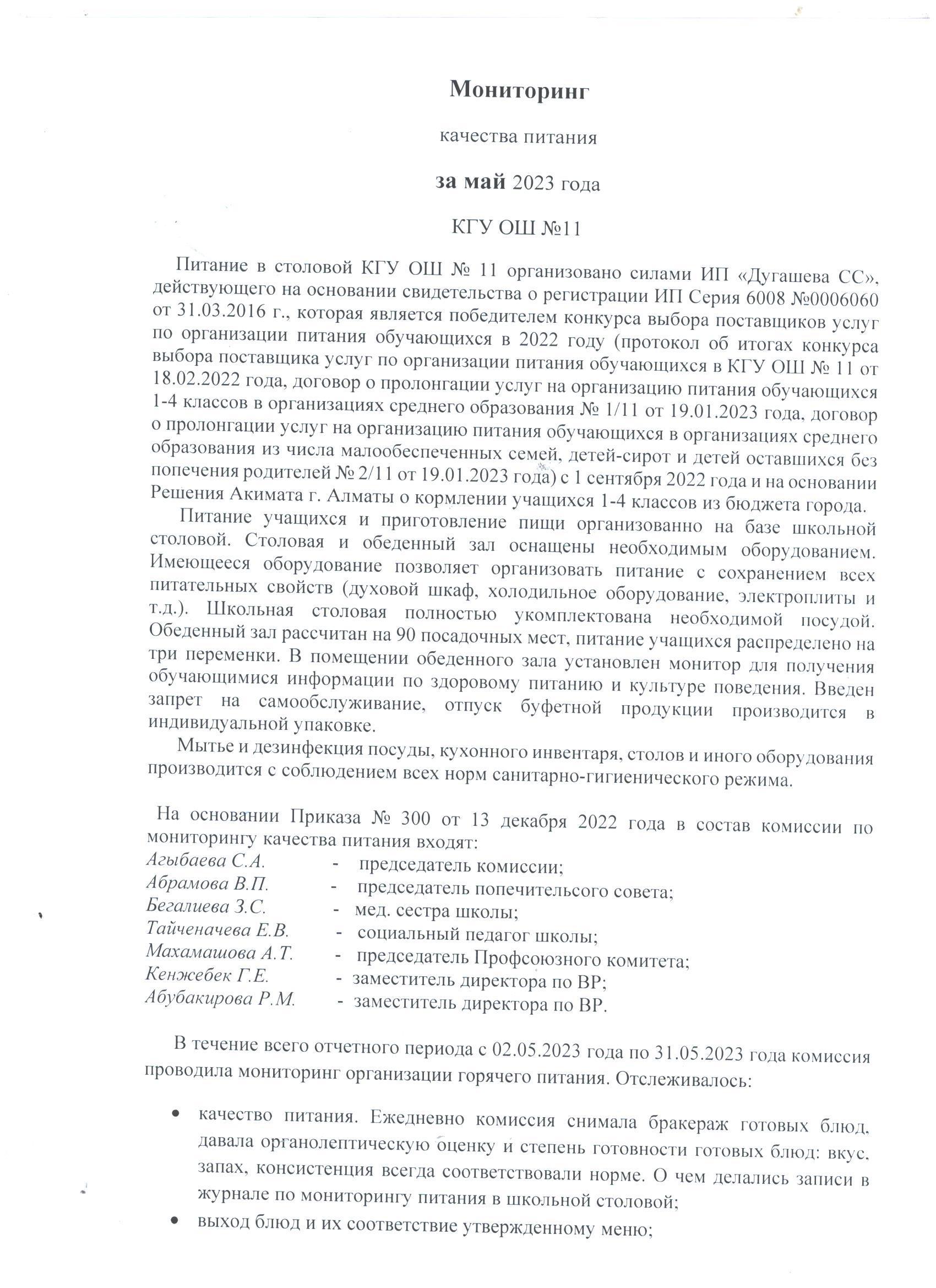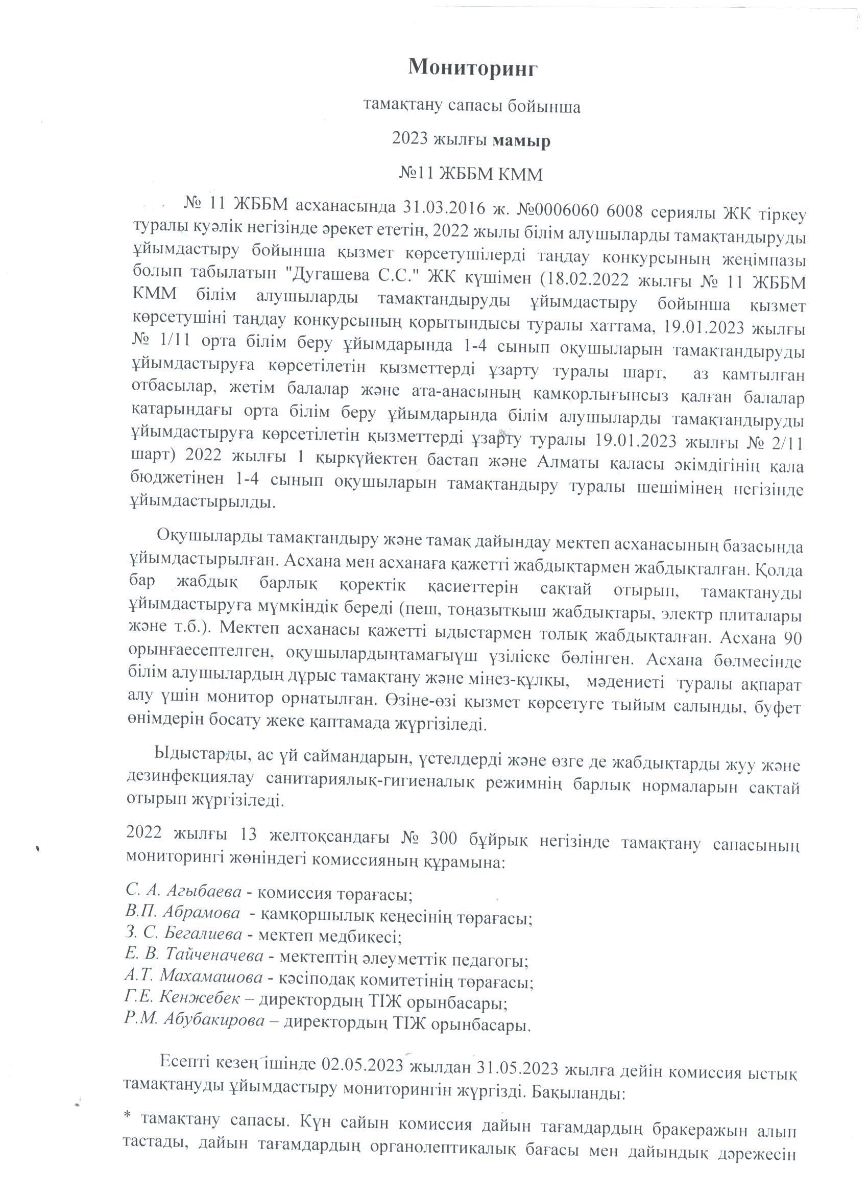01 маусым 2023 0 1 2 3 4 5 Мониторинг тамақтану сапасы бойынша / Мониторинг качества питания Осы беттің QR-коды:QR-код этой страницы: