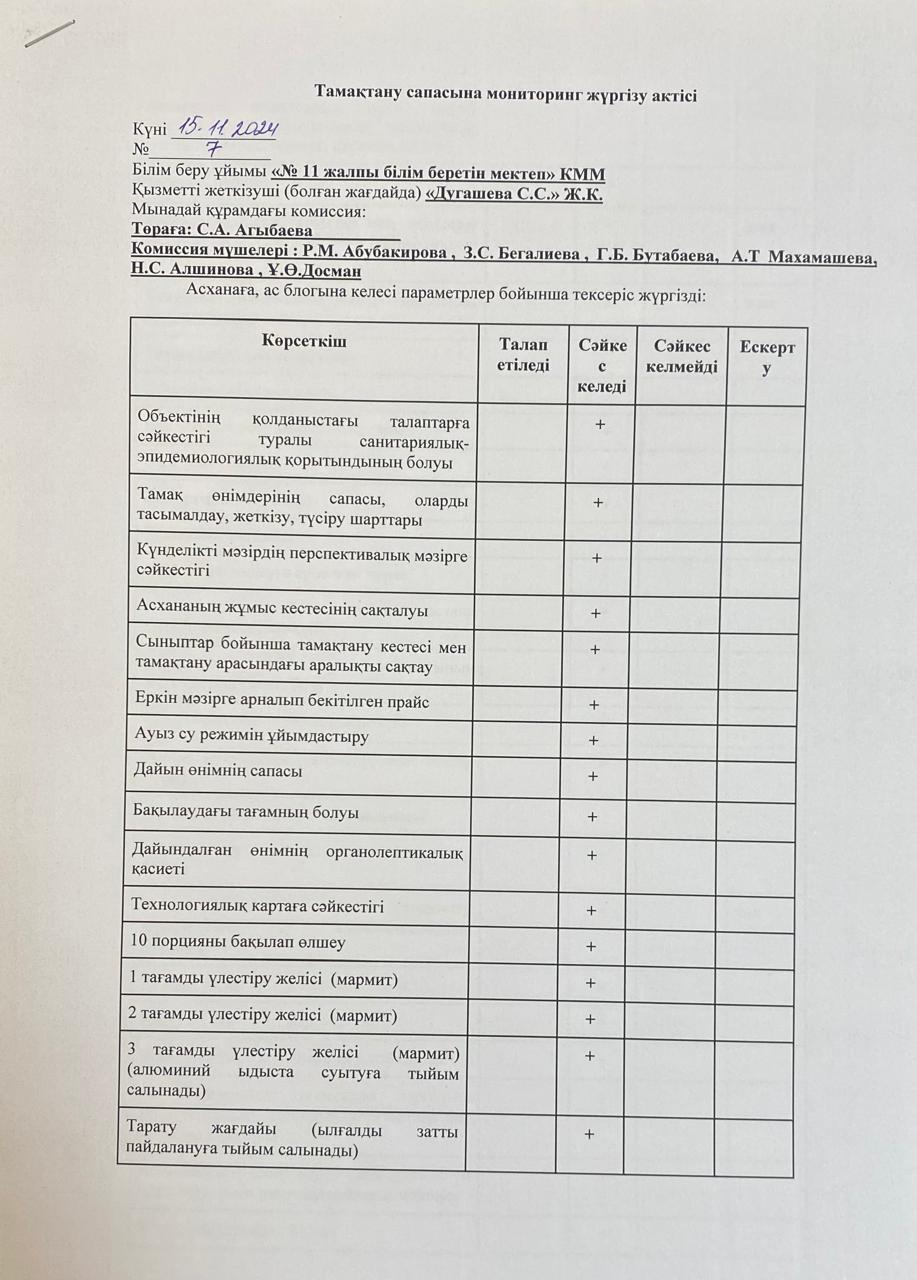 15 қараша 2024 0 1 2 3 4 5 Тамақтану сапасына мониторинг актісі/АКТ мониторинга качества питания Осы беттің QR-коды:QR-код этой страницы: