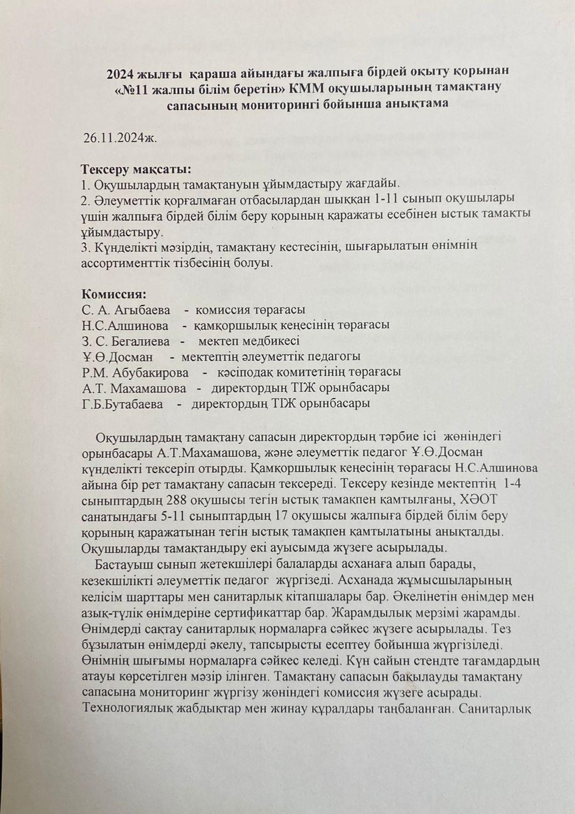 28 қараша 2024 0 1 2 3 4 5 Қараша айы бойынша тамақтану есебі\Отчет питание за ноябрь месяц Осы беттің QR-коды:QR-код этой страницы: