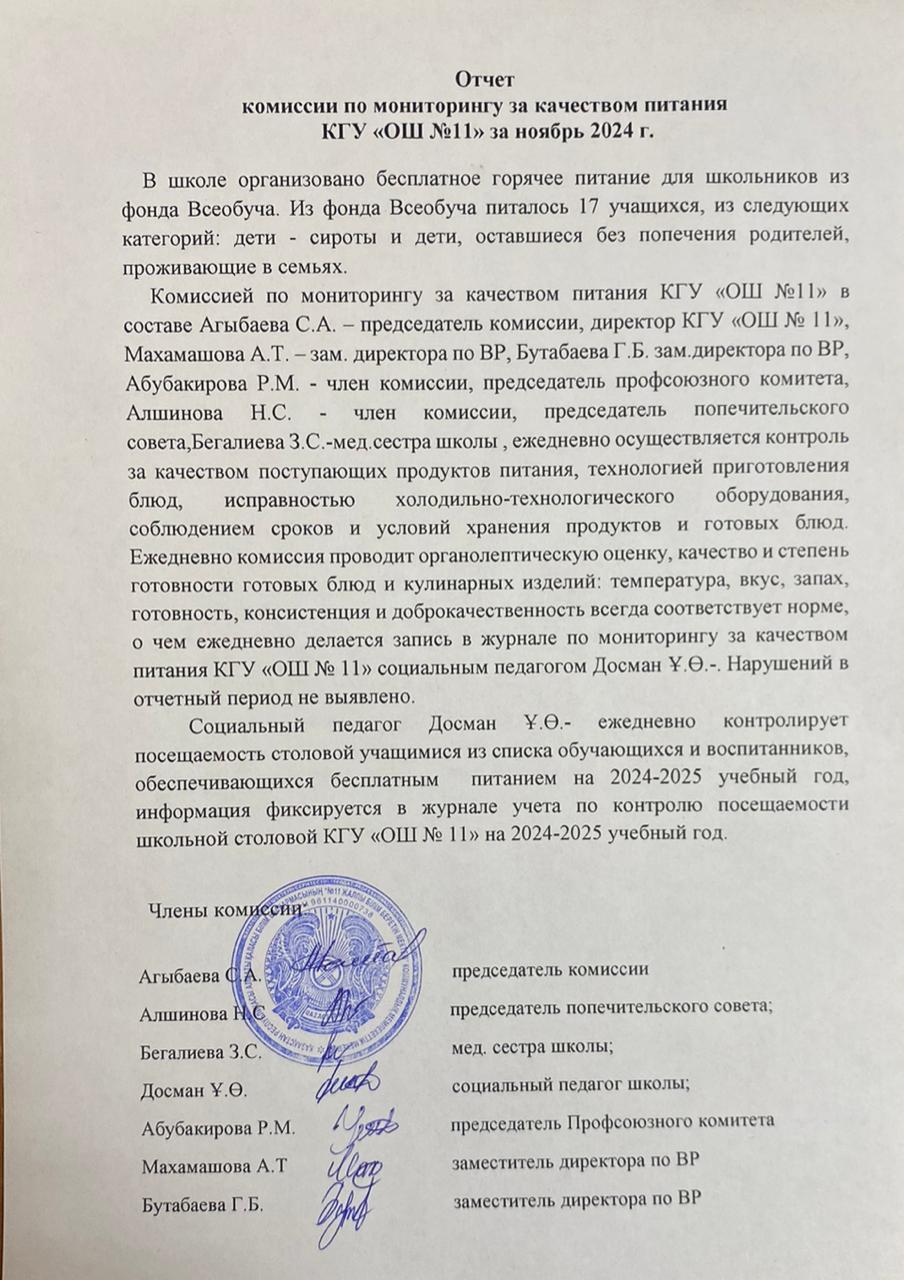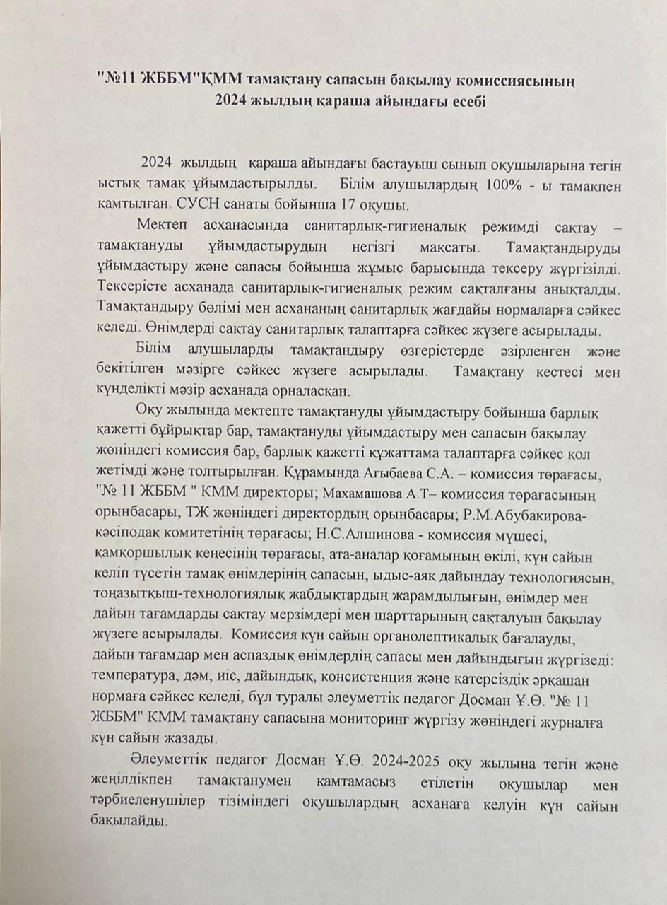 25 қараша 2024 0 1 2 3 4 5 Ноябрь айындағы тамақтану сапасын мониторингілеу бойынша комиссия есебі 2024ж/Отчёт комиссии по мониторингу качества питания за ноябрь 2024г. Осы беттің QR-коды:QR-код этой страницы: